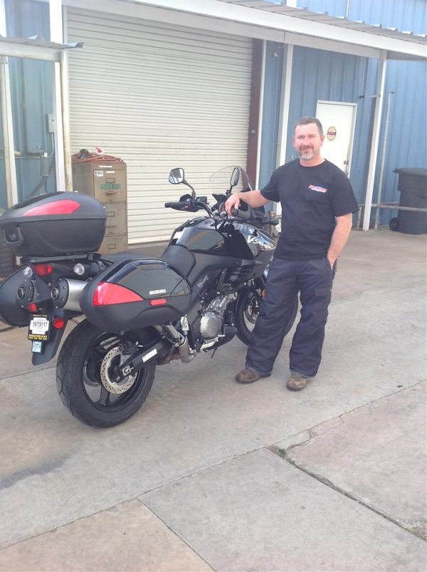 Mr. Halladay on his Suzuki DL 650